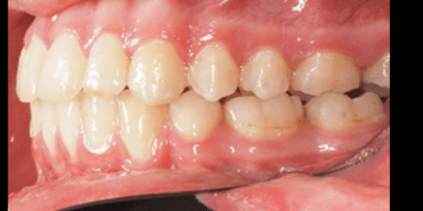 An underbite happens when the teeth along the lower jaw protrude out farther than the upper front teeth. It’s usually a result of incorrect jaw alignment.